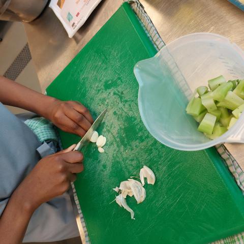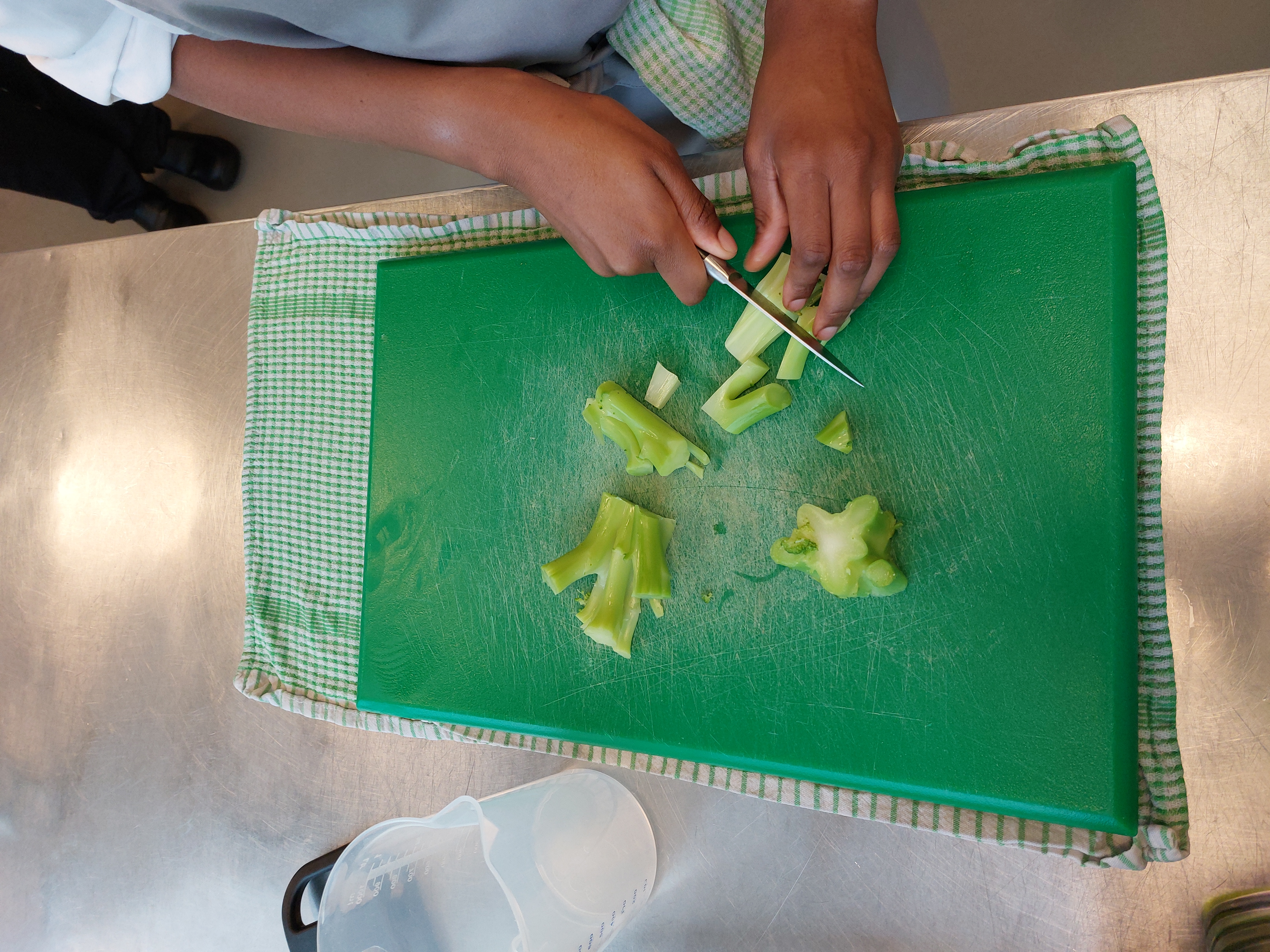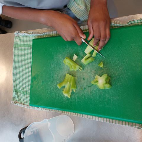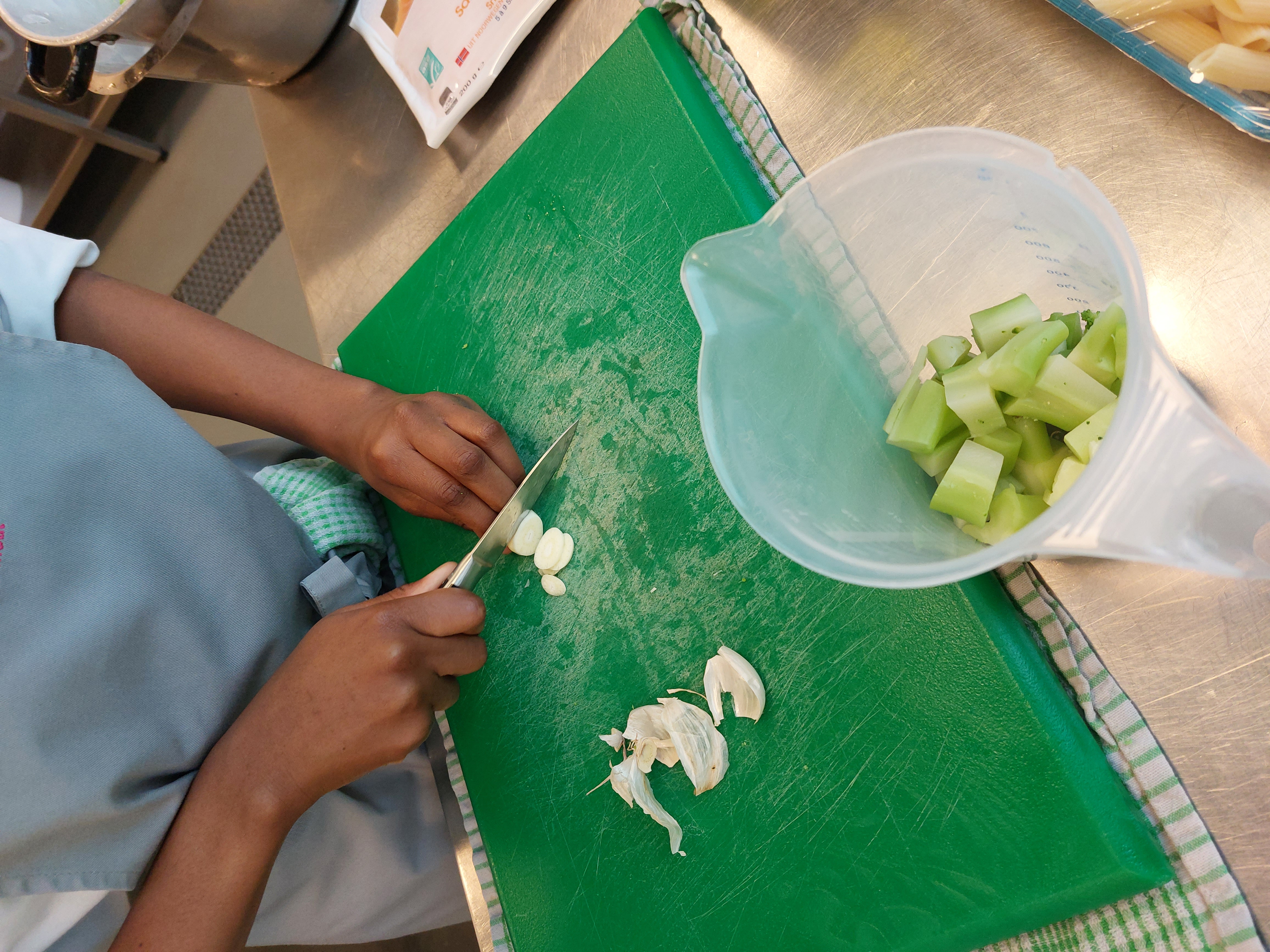 - Snij de broccoli en look in stukjes.